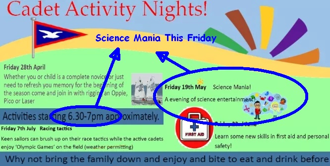 Evening events are a provisional plan and subject to numbers and the age range of cadet involved.  A final timetable of events will be issued when entries are confirmed.