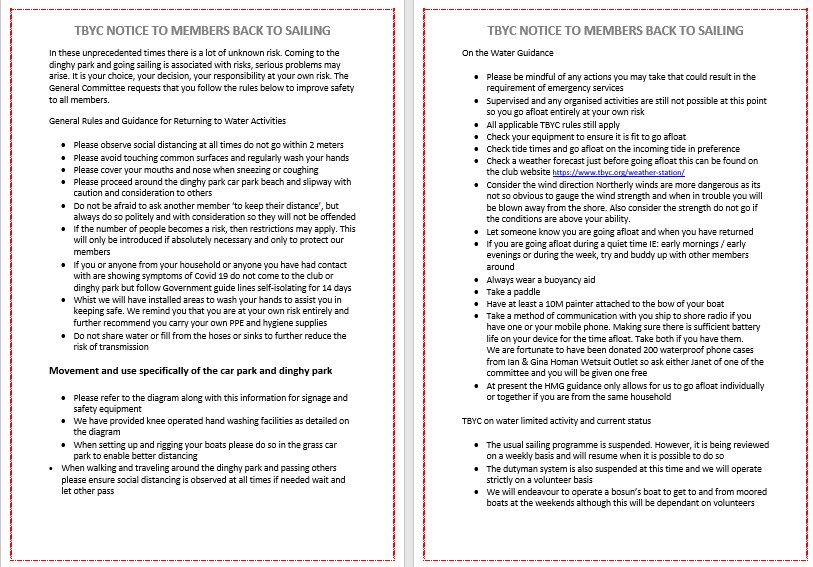 Notice to members No.2 – Back to Sailing and Dinghy Park