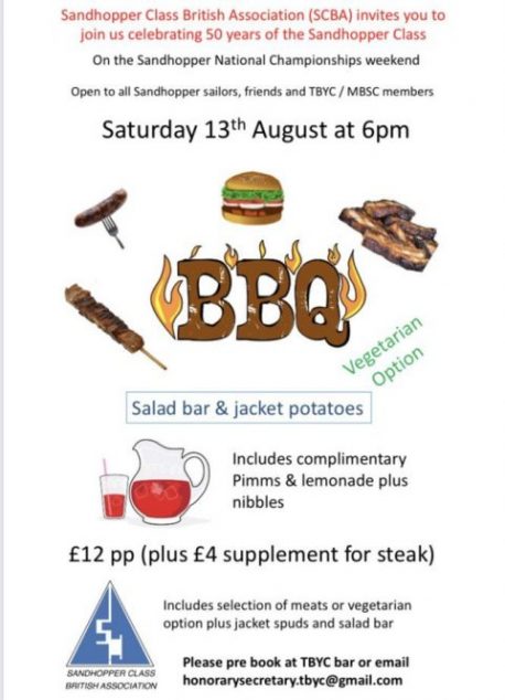 The BBQ is booked for Saturday night this is £12+ per head, it will include a choice of meats and salad. The SCBA will be providing complementary nibbles and a Pimms and Lemonade as well.  Please let Mark Robinson ([email protected]) and I know if you are intending to join us for the BBQ, so we can let the chef know the expected numbers. All are welcome. Start time will be circa 18:00, Mark will confirm the full details and menu shortly.