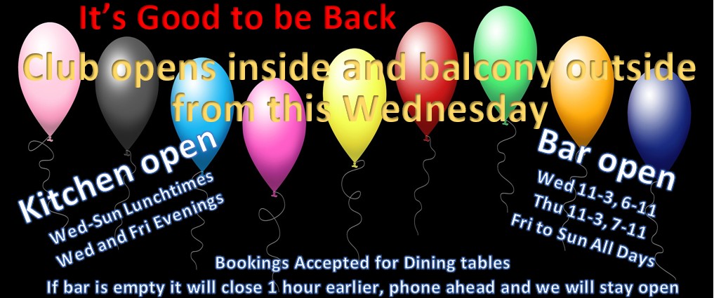 As the club will be closed on Tuesdays for the foreseeable future, lunchtime members are invited to come to the club on Wednesday evenings too, when the kitchen will be open.